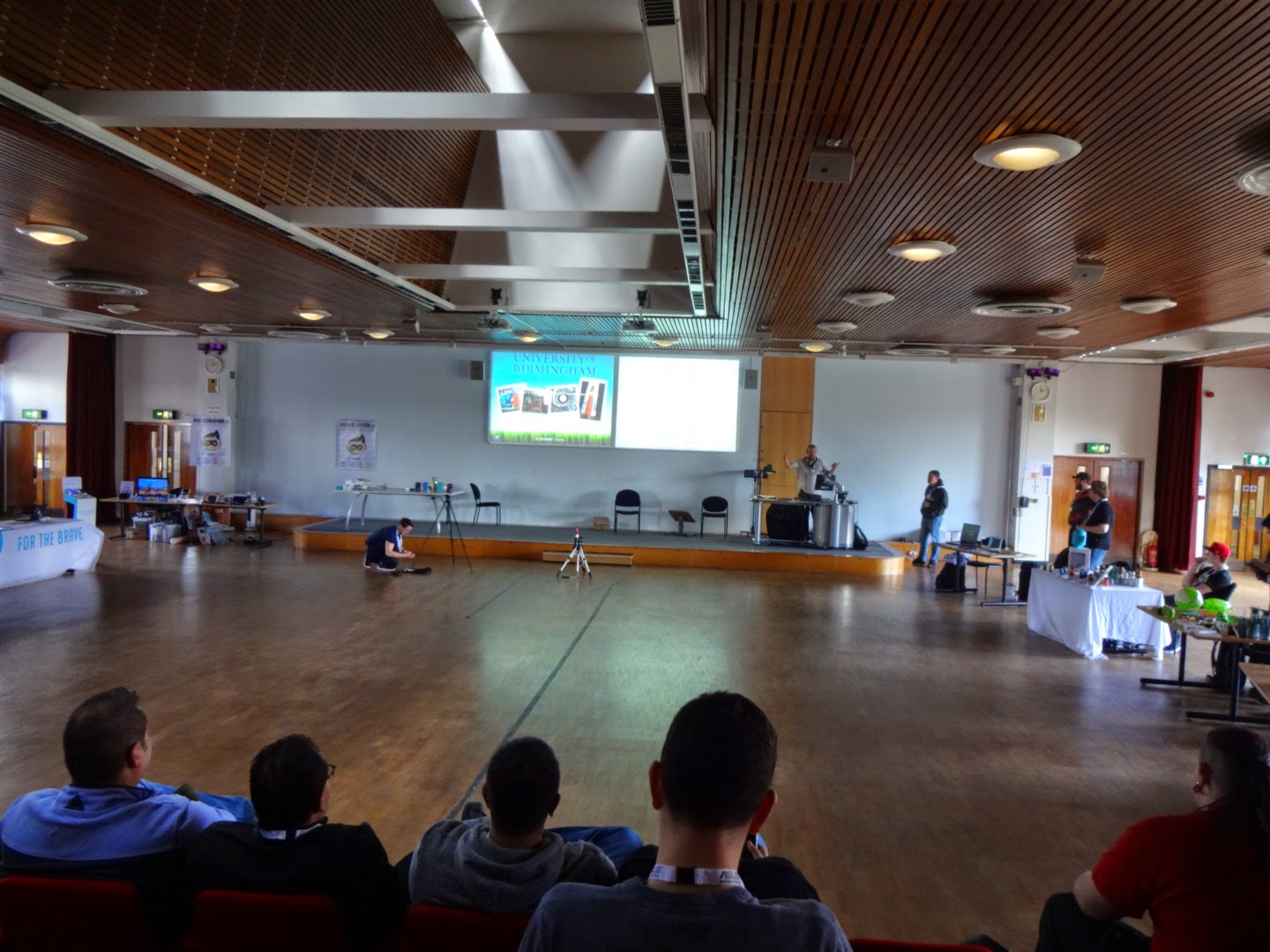 So, having travelled for quite a few hours by coach from Cambridge to Birmingham via Milton Keynes, I arrived at the University of Birmingham just before the first talk from James Bricknell welcoming us to March Of The Droids and explaining how the day was going to be run.